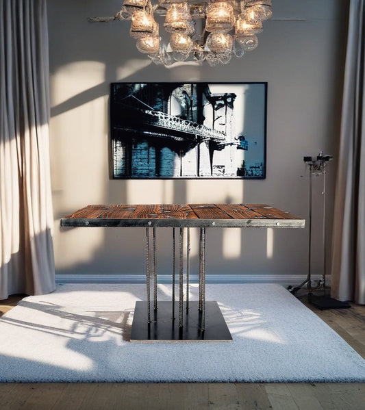 Ми спеціалізуємося на виготовленні меблів з чорного металу та натурального дерева, що обпалюється. Це забезпечує природний захист дерева від зовнішніх впливів, забезпечуючи тривалість і естетичний вигляд наших виробів.